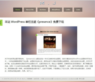 话说M.J 君对自己的《presence》主题是喜爱至极,为嘛要提供免费下载呢?其实,主要是因为有个博主悄悄的抄袭了M.J 君的主题,还自称是自己的,还提供免费下载权利。